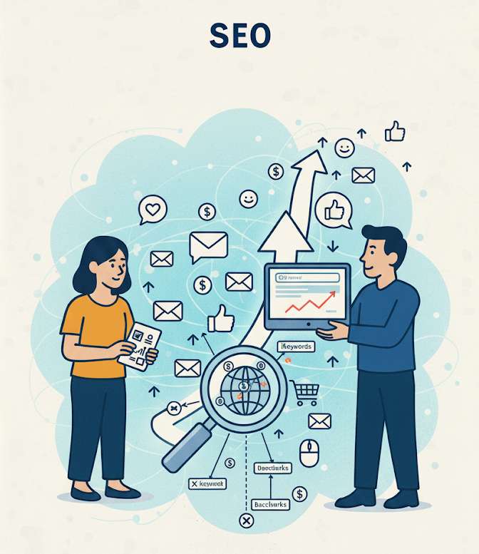 SEO makes your business more visible online by ranking higher in search results. It builds credibility, attracts organic traffic, and ensures potential customers find you before your competitors.